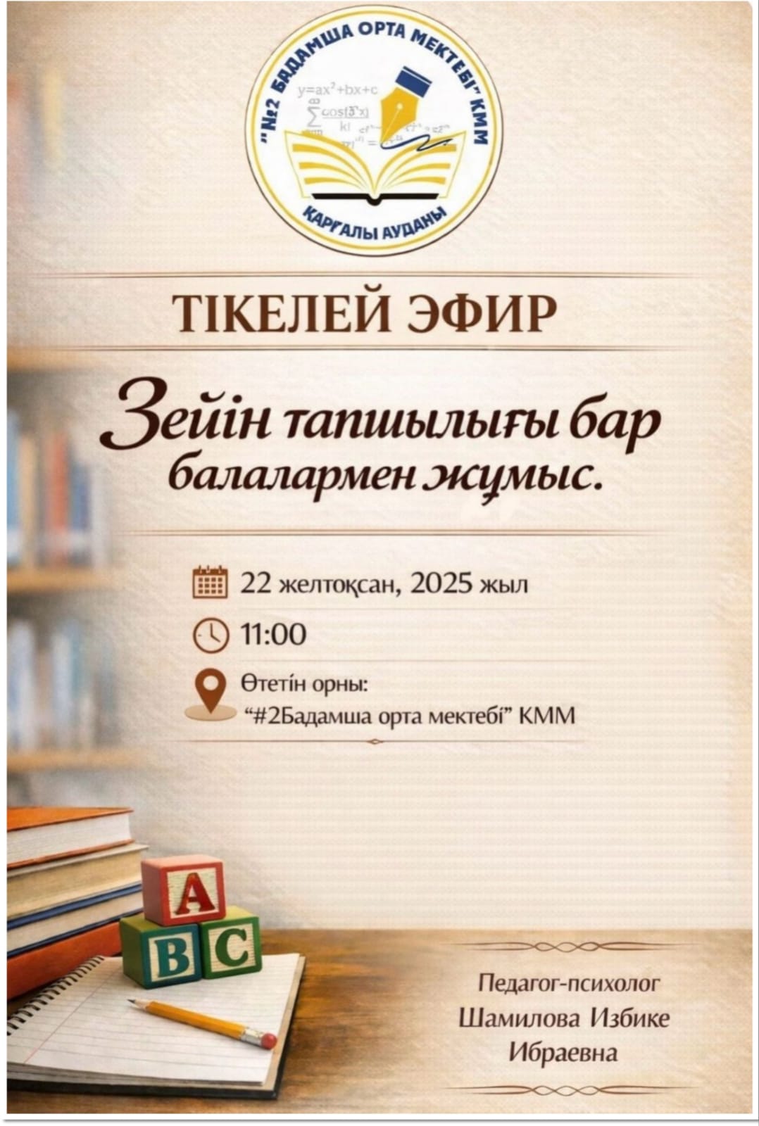 "Ақтөбе облысы білім басқармасының Қарғалы ауданының білім бөлімі" ММ - "№2 Бадамша орта мектебі" КММ